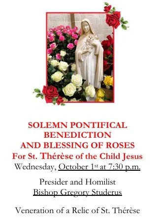 All are invited to come to our annual Blessing of Roses in honor of St. Thérèse on her Feast Day, October 1st at 7:30 pm